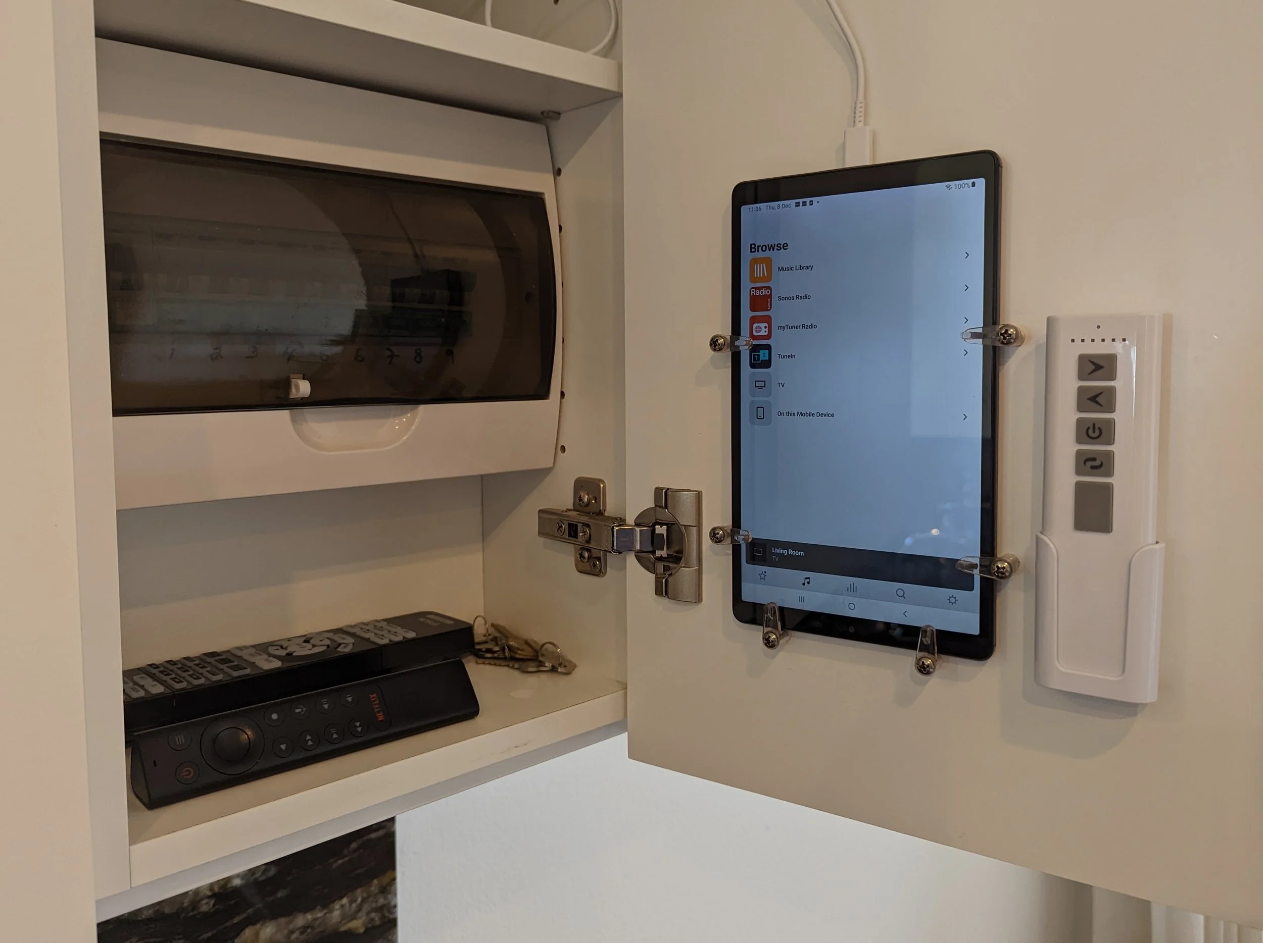 The switch box is inside the control cabinet on the right hand side above the induction cooktop.